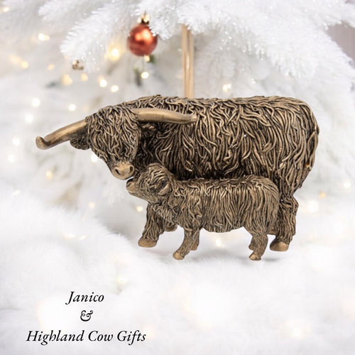 Large BRONZE HIGHLAND COW & CALF