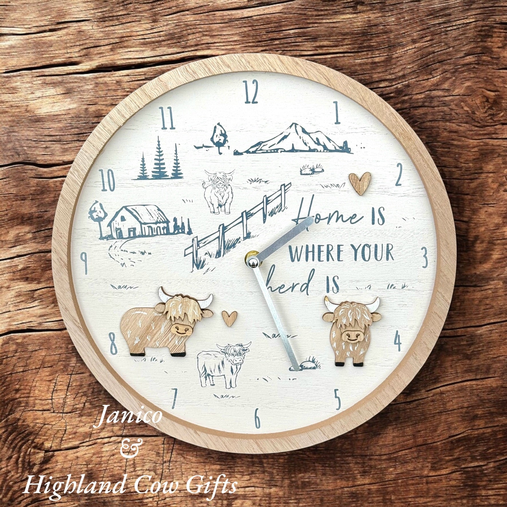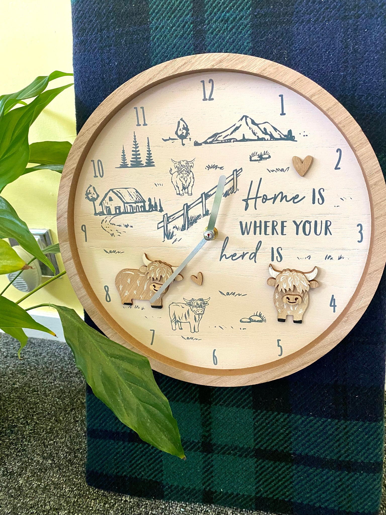 This Delightful ‘Home is where your herd is’ Highland Cow Clock, it would adorn any space in you home, and be a lovely addition to your collection.