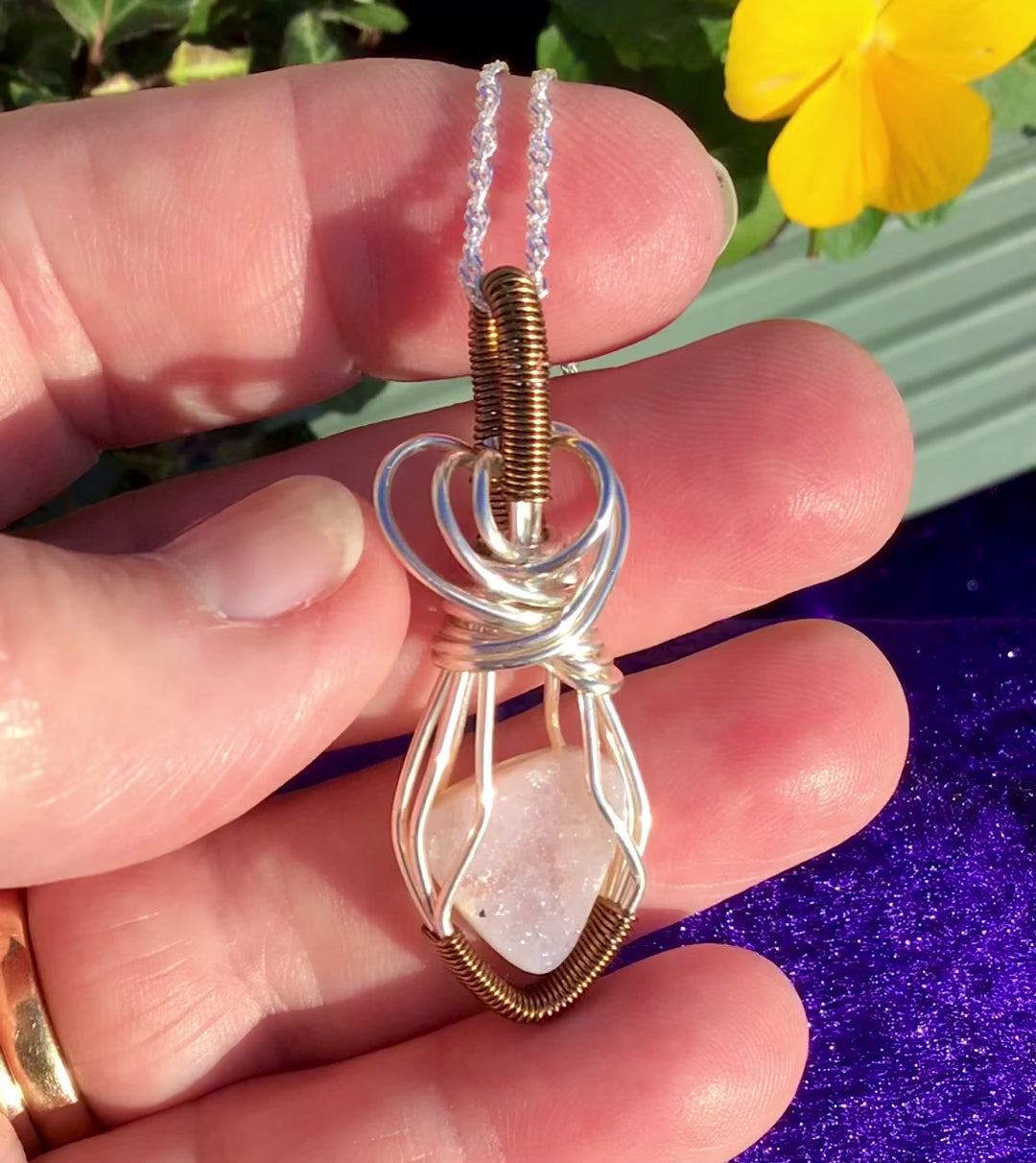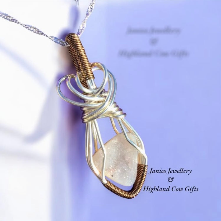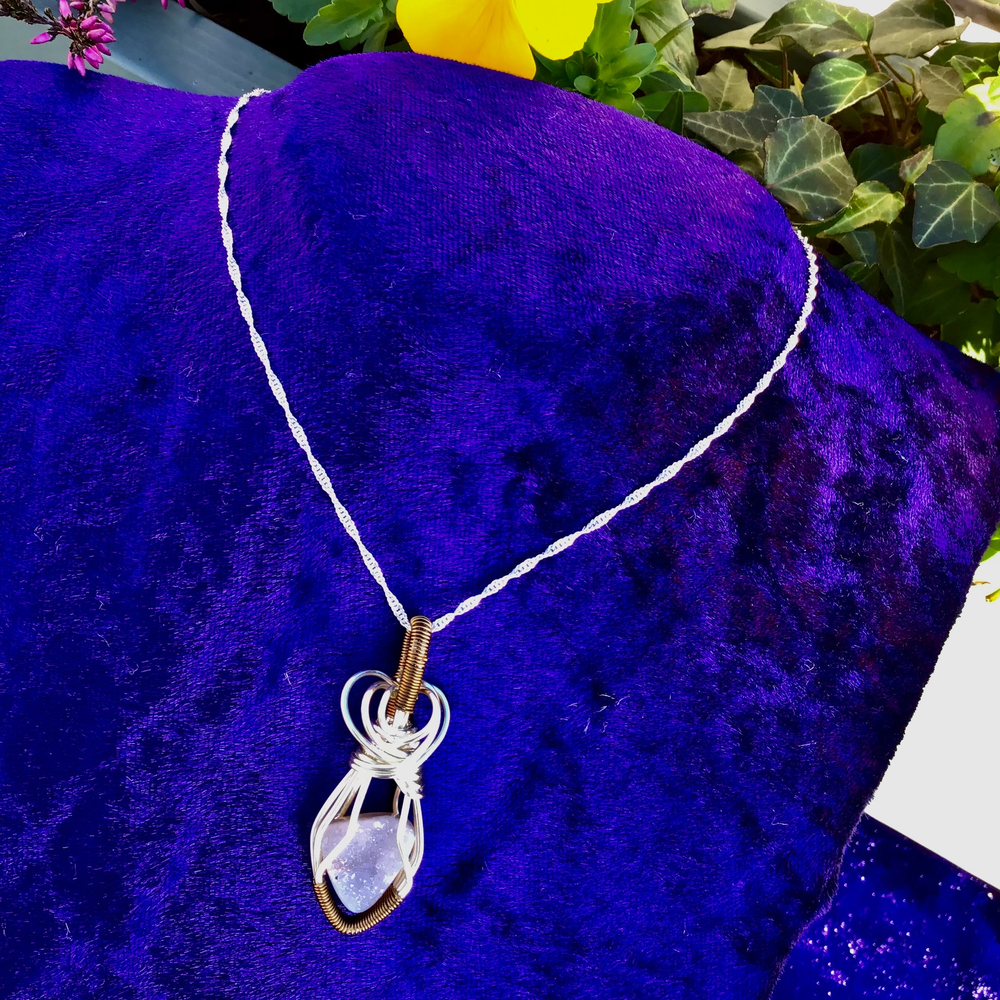 This gorgeous one of a kind Petite Natural Druzy Geode Agate Pendant has been Wirewrapped to bring out the elegance and beauty of this gem with and presented on a .925 Sterling Silver Twist Chain.